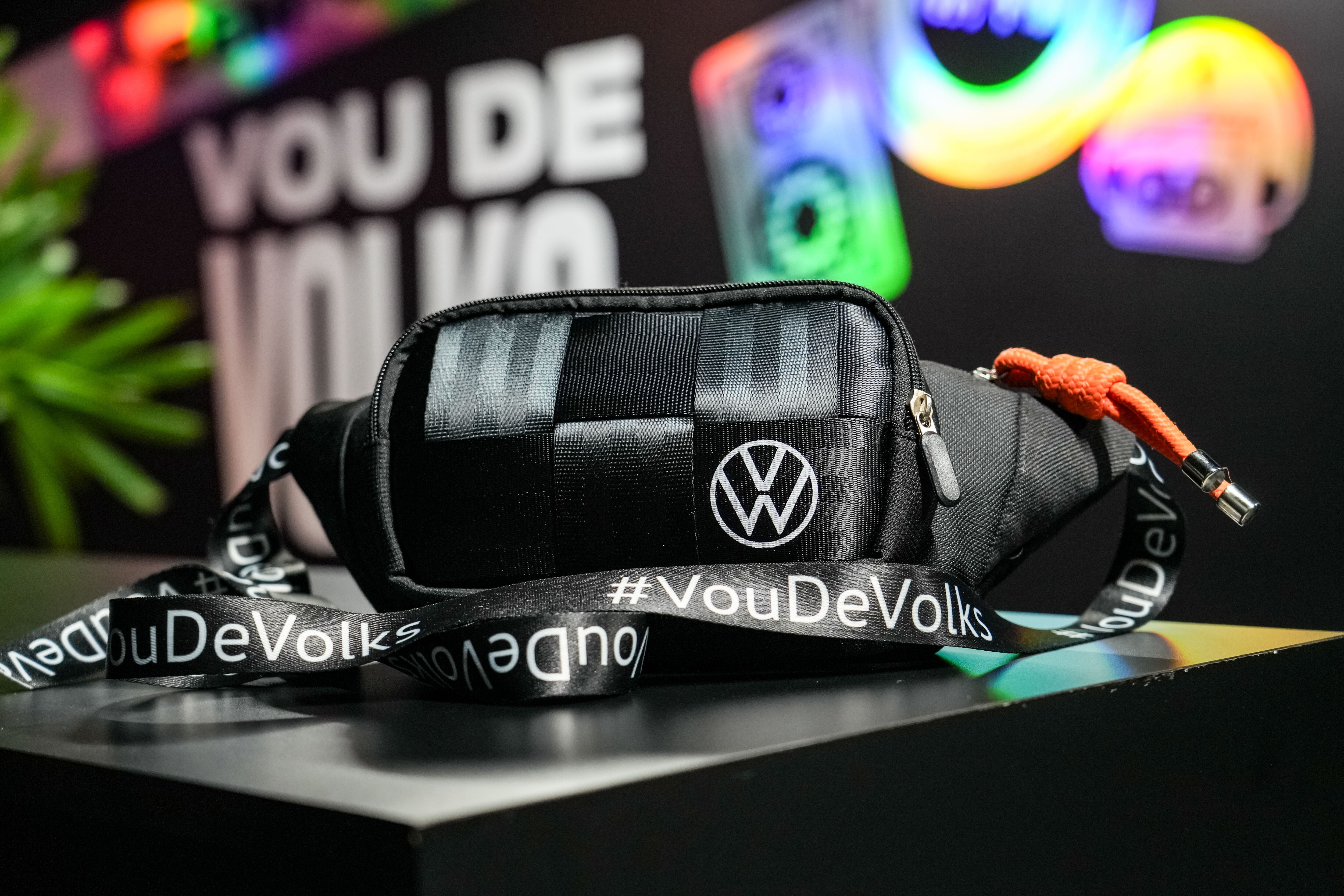 Com sua equipe, Jô costurou 2 mil pochetes sustentáveis, que foram distribuídas aos convidados da Volkswagen do Brasil, e 10 mil cordões de celular para quem participou das ativações dos estantes.